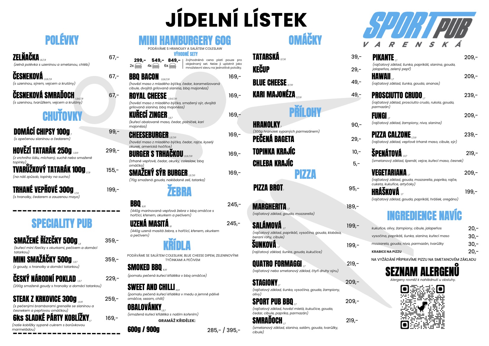 VYSOČINA, PAPRIKÁŠ, ŠUNKA, SLANINA, KUŘECÍ MASO 30,-